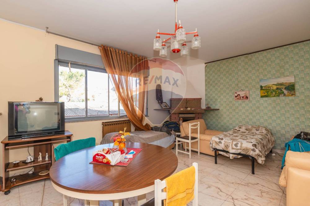 L'ingresso conduce direttamente alla zona giorno, composta da un ampio soggiorno con camino e una cucina abitabile.
