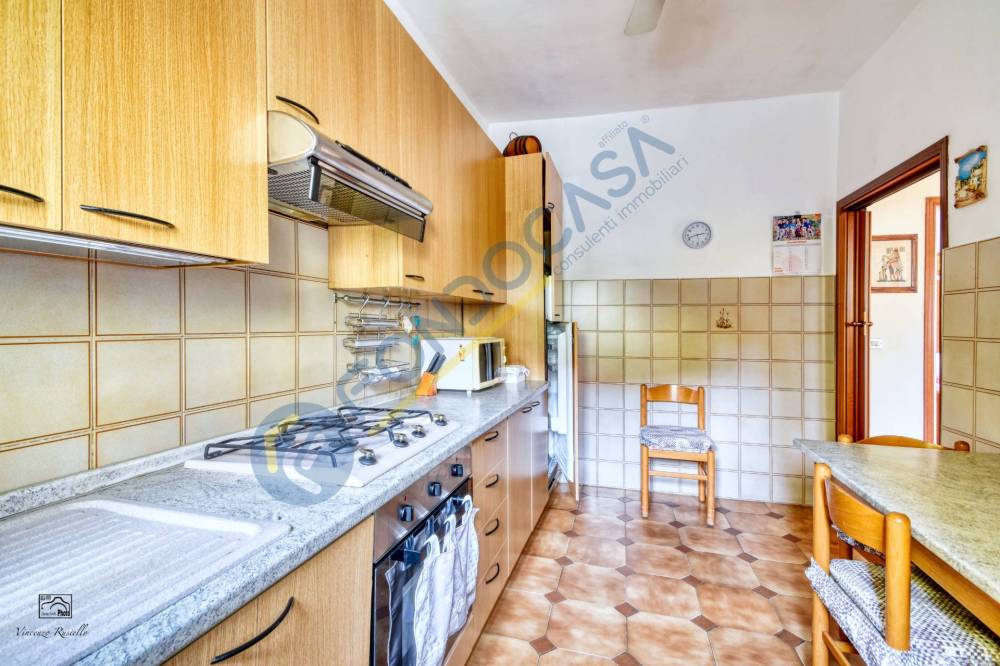 Al piano primo accediamo tramite un balcone comune e troviamo un soggiorno, cucina abitabile, una camera matrimoniale e un bagno finestrato con doccia.