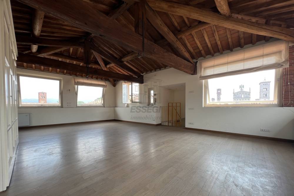 IA03708 – ATTICO/MANSARDA – CENTRALISSIMO APPARTAMENTO CON VISTA MOZZAFIATO – Lucca, Centro Storico. A pochi passi da Piazza San Michele, Essegi Immobiliare propone in vendita un esclusivo appartamento su più livelli situato nel cuore del Centro Storico di Lucca, splendida Città delle Mura: un centro storico unico, completamente cintato da mura rinascimentali percorribili a piedi o in bici. Lucca offre inoltre un’alta qualità della vita, con un’atmosfera tranquilla, sicura e a misura d’uomo e tutti i servizi a portata di mano. L’immobile, posto al quarto piano, si distingue per le ampie finestre panoramiche che si affacciano sui quattro lati della città, regalando scorci unici sui tetti e sulle storiche torri di Lucca. La particolare articolazione degli ambienti, unita alle finiture eleganti, conferisce all’appartamento un fascino raffinato e una rara luminosità. La proprietà si compone di: ampio salone con angolo cottura, camera matrimoniale, studio/camera, ulteriore studio, due bagni. L’appartamento è in ottime condizioni e subito abitabile. La posizione all’ultimo piano garantisce privacy e assoluta tranquillità, pur rimanendo nel cuore pulsante della città. Richiesta: € 390.000 Nota: la localizzazione indicata sulla mappa è puramente approssimativa e non corrisponde all’esatta posizione dell’immobile.