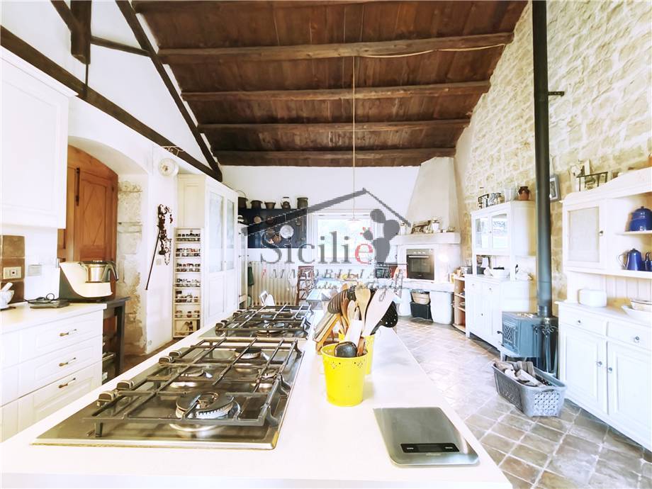 Sicilie Immobiliare di Giulia Battaglia propone in vendita a Modica in cda Gisana una villa del 1890 completamente ristrutturata nel 2002 circondata dal verde e con una bellissima vista sulla campagna. La proprietà è stata ristrutturata sapientemente conservando tutti gli elementi tipici come i tetti in canne e gesso, la pietra pece, le basole, le cementine, le maioliche. Entrando in questa dimora ci accoglie un giardino di oltre un ettaro ben curato con delle verande su cui affacciano tutte le stanze che infatti godono di un meravigliosa vista sui giardini e sulla biopiscina. Il primo grande caseggiato di 450 mq circa è composto da un ampio salone con grandi porte finestre, una cucina resa importante da una grande isola centrale, una sala libreria, 5 camere da letto con bagno ensuite, una camera con bagno ricavata sul soppalco ed un bagno di servizio per la zona giorno. Il secondo caseggiato di 65 mq circa è una depandance con una cucina soggiorno, una camera da letto ed un bagno. Nel terzo blocco troviamo una ulteriore cucina con dispensa di 30 mq circa ed infine un vano tecnico di 60 mq circa.