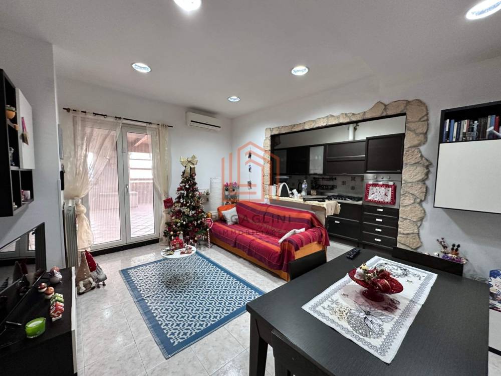 Varcando la soglia, sarete accolti da una sala luminosa, il cuore pulsante dell'abitazione. Questo ambiente è concepito per la massima convivialità, integrandosi perfettamente con un angolo cottura funzionale.