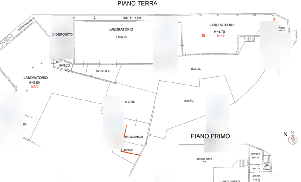 -Piano terra adibito a laboratori e deposito con locali accessori di superficie complessiva mq 1.055,44 al piano primo adibito a uffici di superficie complessiva mq 44,44.