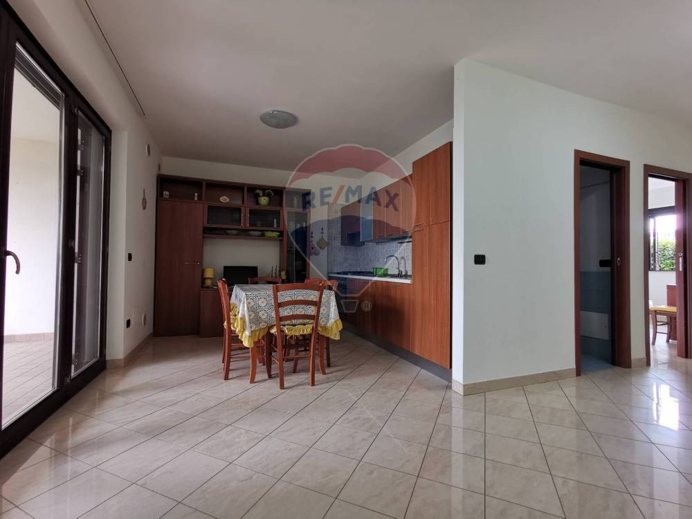 Il soggiorno pranzo nasconde una porta a vetri che aperta si nasconde nella parete attrezzata e porta al disimpegno dove c'è laccesso al bagno con finestra, alla camera da letto matrimoniale e all'altra camera.
