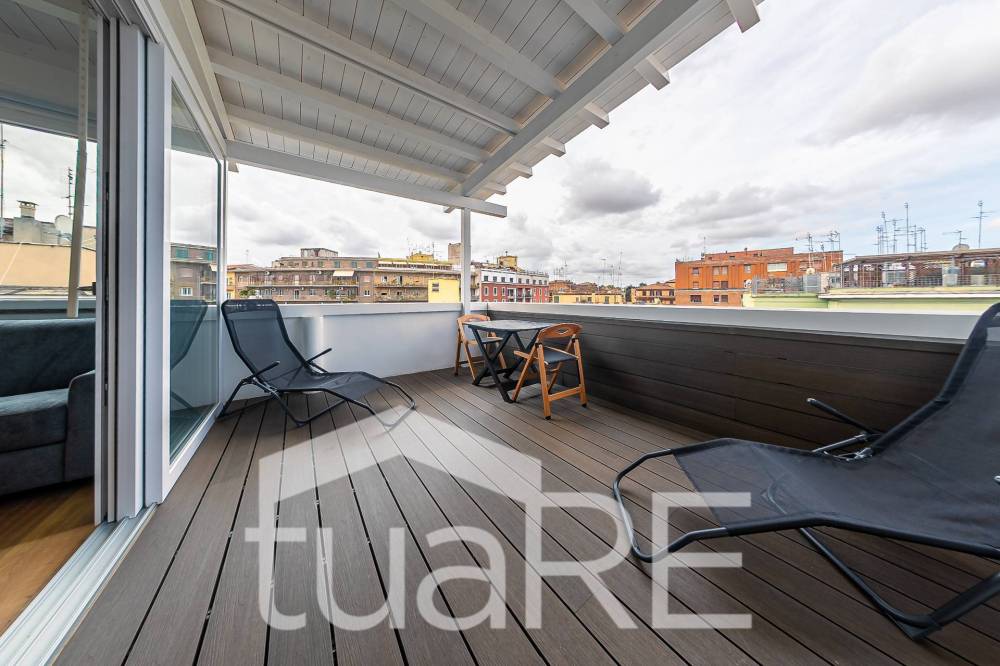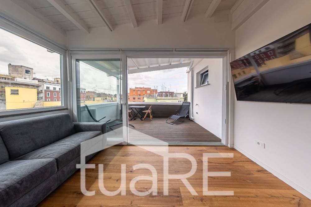 L'immobile si trova in Via di Trasone, a pochi passi Piazza da Crati in uno stabile signorile moderno e ristrutturato. L'attico è stato appena completamente e finemente ristrutturato con l'utilizzo di materiali di pregio e non essendo mai stato abitato è pronto per esserlo sin da subito.