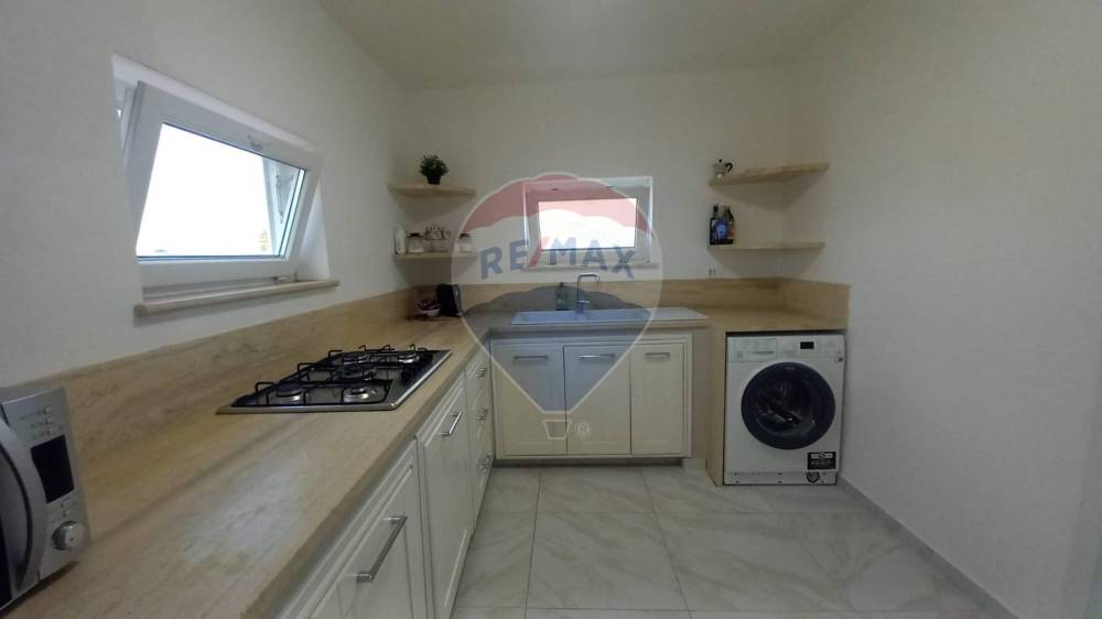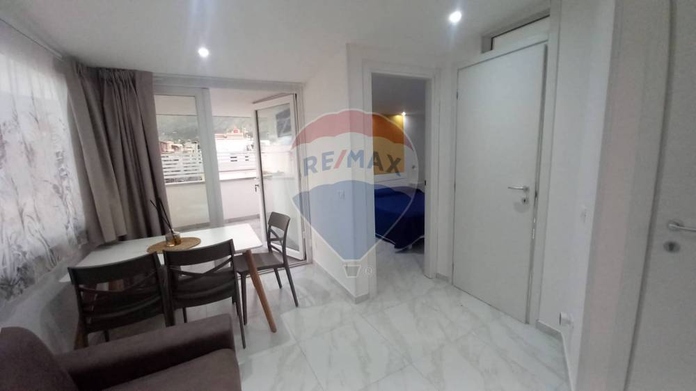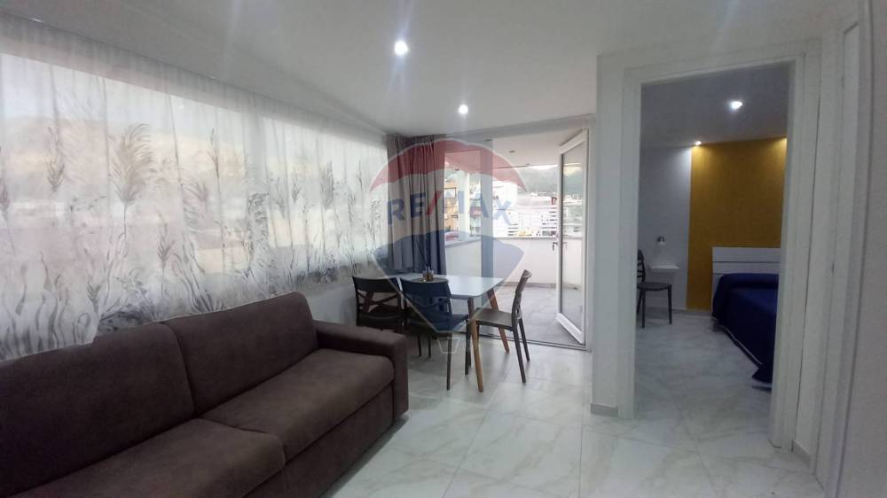 L’appartamento è composto da un soggiorno con accesso a un piccolo terrazzo che si affaccia sul prospetto principale, una cucina, un servizio con doccia e una camera da letto matrimoniale. Le finiture comprendono infissi in alluminio con vetro camera, porte interne in legno, pavimentazione in gres porcellanato e condizionatori in ogni stanza, garantendo il massimo comfort abitativo.