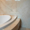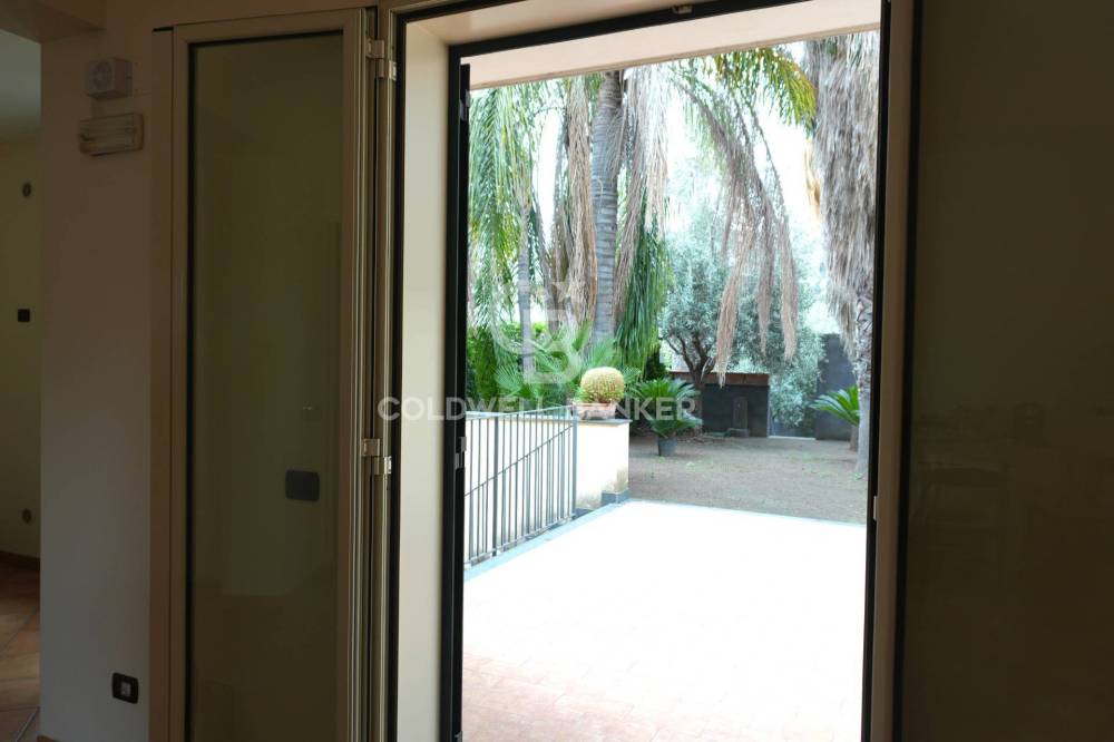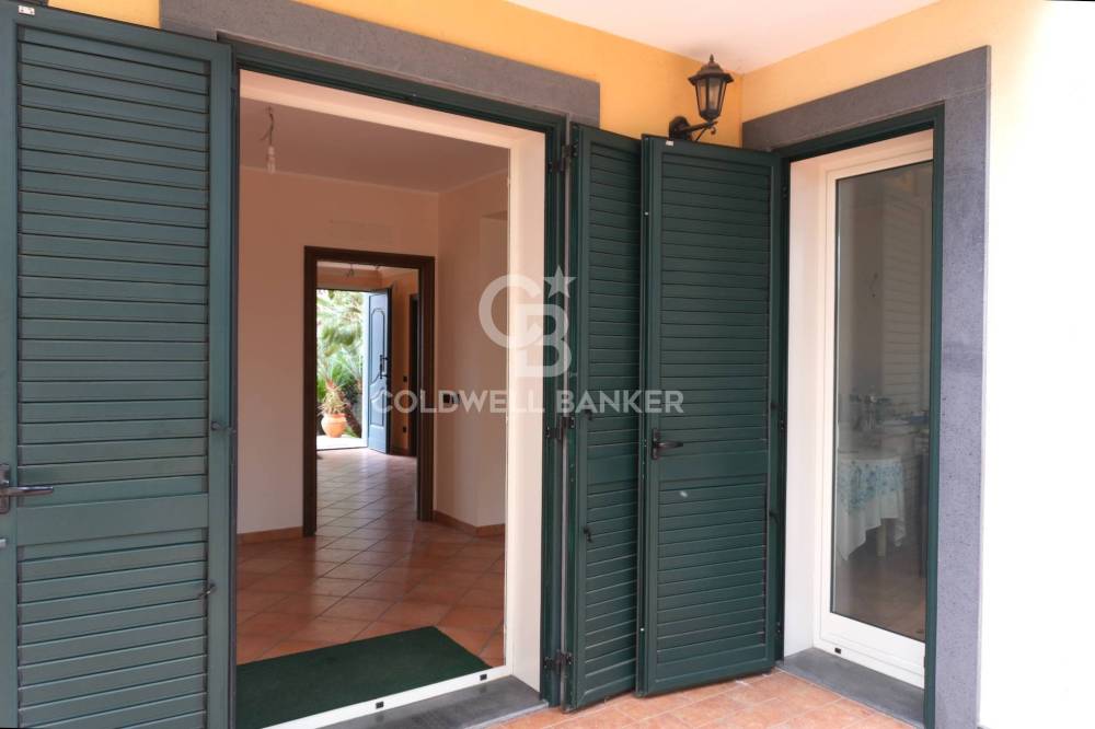 La villa dispone di 3 ingressi indipendenti, ampio giardino di circa 600 mq, piantumato con alberi da frutto e palme ad alto fusto, che consente anche una zona parcheggio esterna molto spaziosa. L'interno dell'abitazione si sviluppa principalmente su 2 livelli composti dal piano terra, a cui si accede ad una grande cucina-soggiorno - con affaccio sul giardino lato interno - bagno con antibagno, soffitti in cartongesso, parete rivestita in pietra di Comiso e scala in travertino, che conduce al piano superiore. Qui troviamo 3 ampie camere da letto con pavimento in parquet di ciliegio, posato in opera a spina di pesce per l'intera superficie, un'ampia sala da bagno in cui sia il pavimento, che il rivestimento delle pareti e della vasca idromassaggio è interamente in marmo rosa, il bagno è dotato anche di una capiente doccia rivestita di mosaico Marazzi.