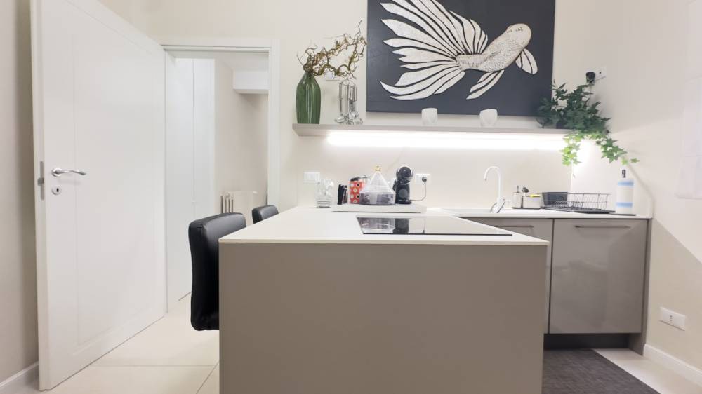 Cucina realizzata su misura, dotata di 6 elettrodomestici di ultima generazione: