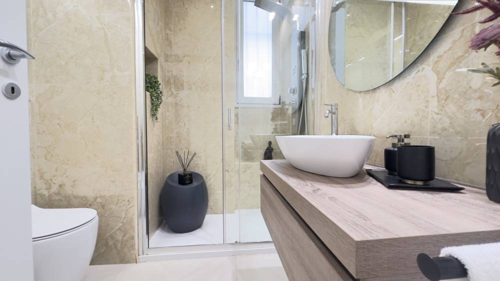 124 m² commerciali | 120 m² calpestabili2 ampie camere da letto, entrambe luminose e ben arieggiate3 bagni completi, di cui uno en-suite con doccia idromassaggioLuminoso soggiorno living con bagno di pertinenzaCucina abitabile separata da tramezzo calpestabile, con finestraBalcone interno affacciato sulla corte antica del palazzo2 cantinole di diverse metrature, una ideale per bici/moto/monopattini
