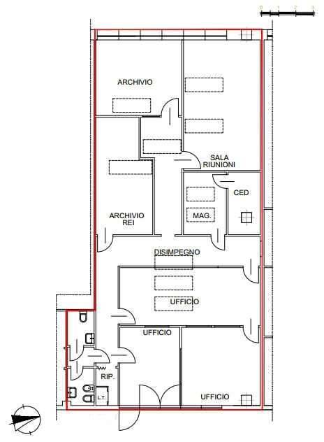 Modena Ovest/Cittanova: si propone in locazione locale al piano primo con ingresso indipendente in stabile commerciale adiacenze casello Modena Nord. Buon complesso dotato di parcheggi per le attività con impianti riscaldamento con contabilizzatori. Internamente composto da 3 stanze Ufficio, n.2 archivi con lucernai, 1 magazzino con locale ced, ampia sala riunioni e doppi servizi. A disposizione due Posti Auto Riservati.