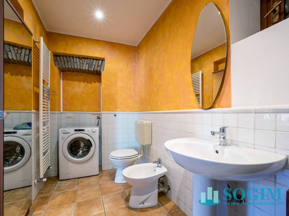 Il bilocale, caratterizzato da suggestive pareti con pietre a vista e splendide travi in legno, che conferiscono unatmosfera calda ed accogliente, è situato in un contesto cortilizio munito di portone automatizzato e privo di servizio di portineria.