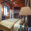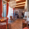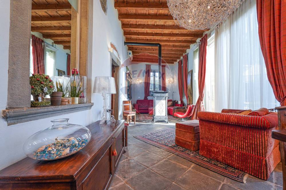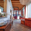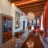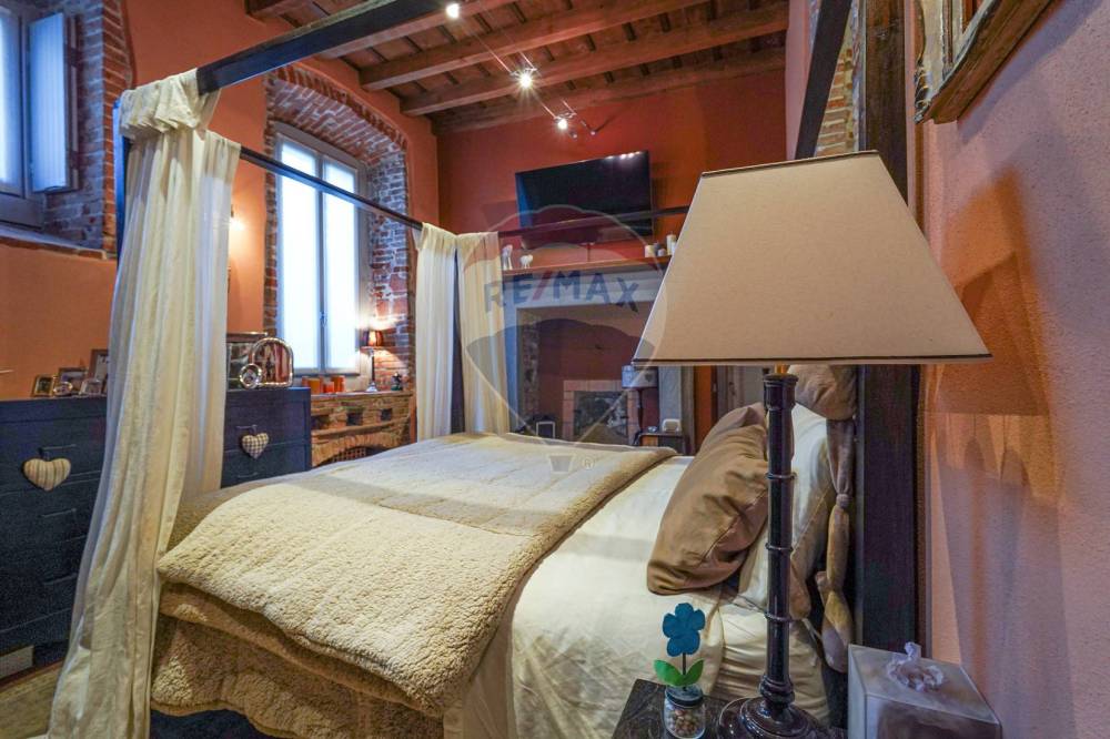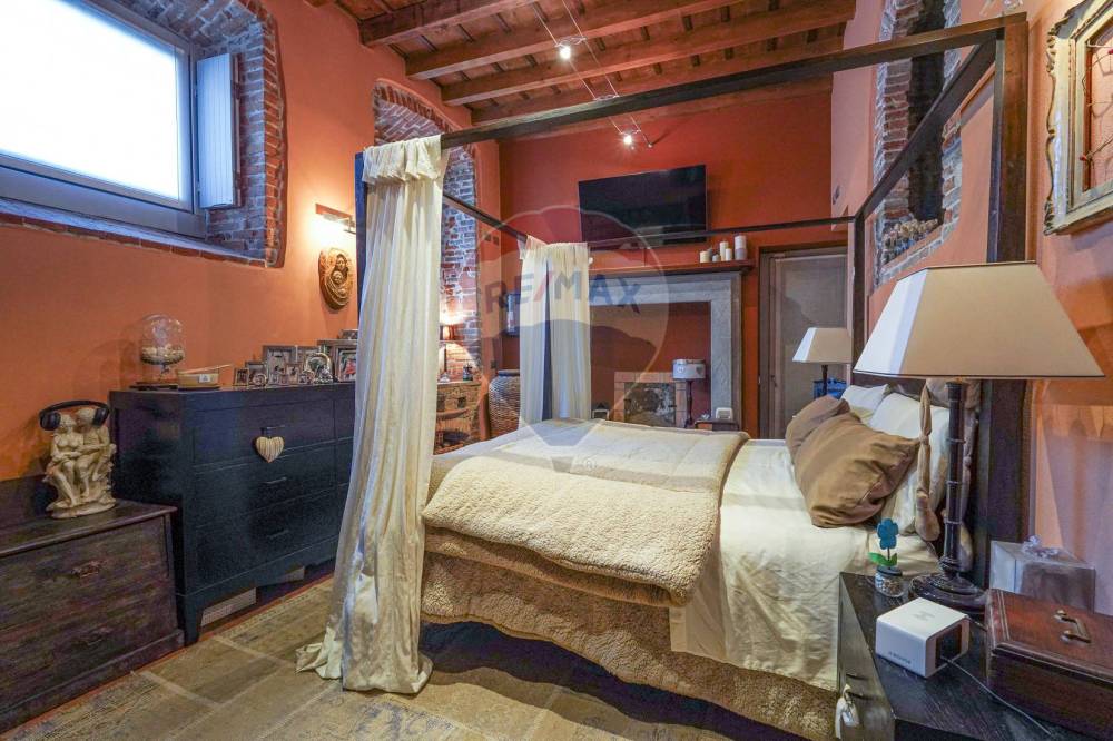 In tutto l'appartamento abbiamo i richiami d'epoca: il soffitto con le travi a vista, i pavimenti in cotto originale, gli affreschi e le porte originali d'epoca, fatte restaurare dalla proprietaria. Nessun dettaglio è stato lasciato a caso.