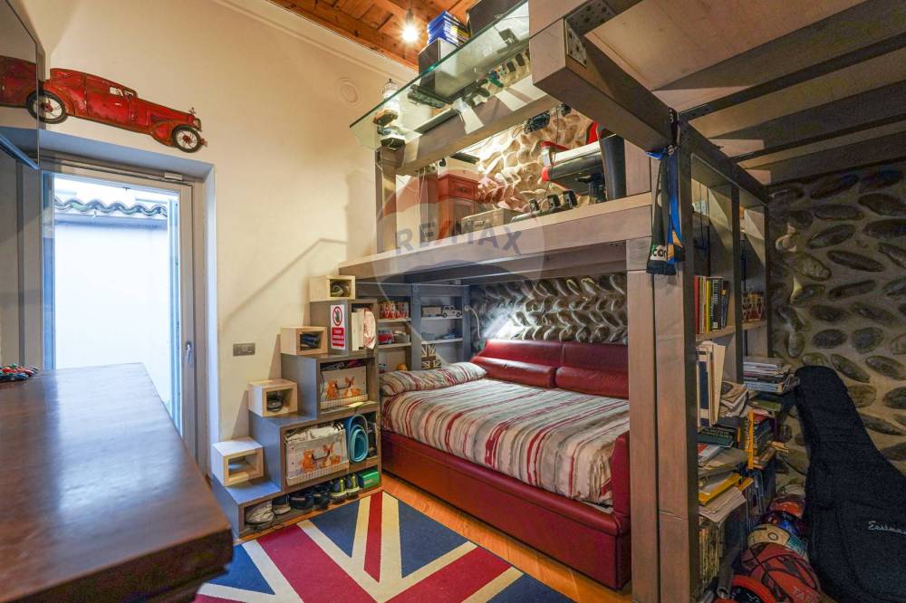 La zona notte comprende una camera padronale con un letto a baldacchino, la seconda camera e un bagno di servizio con box doccia in vetro.