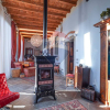 Entrando ci troviamo davanti ad un ampio salone con pavimenti e soffitti originali e una suggestiva stufa depoca al centro.