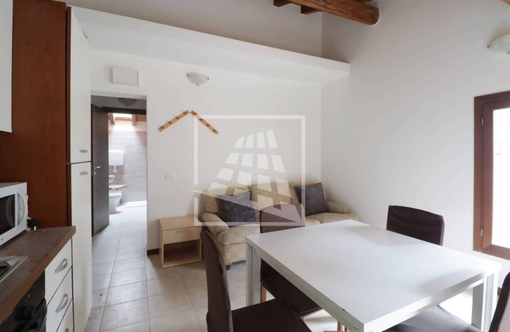 Si compone di ingresso su disimpegno, un luminoso soggiorno con cucina a vista, una camera da letto e un bagno completo di box doccia e velux.