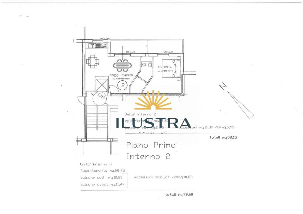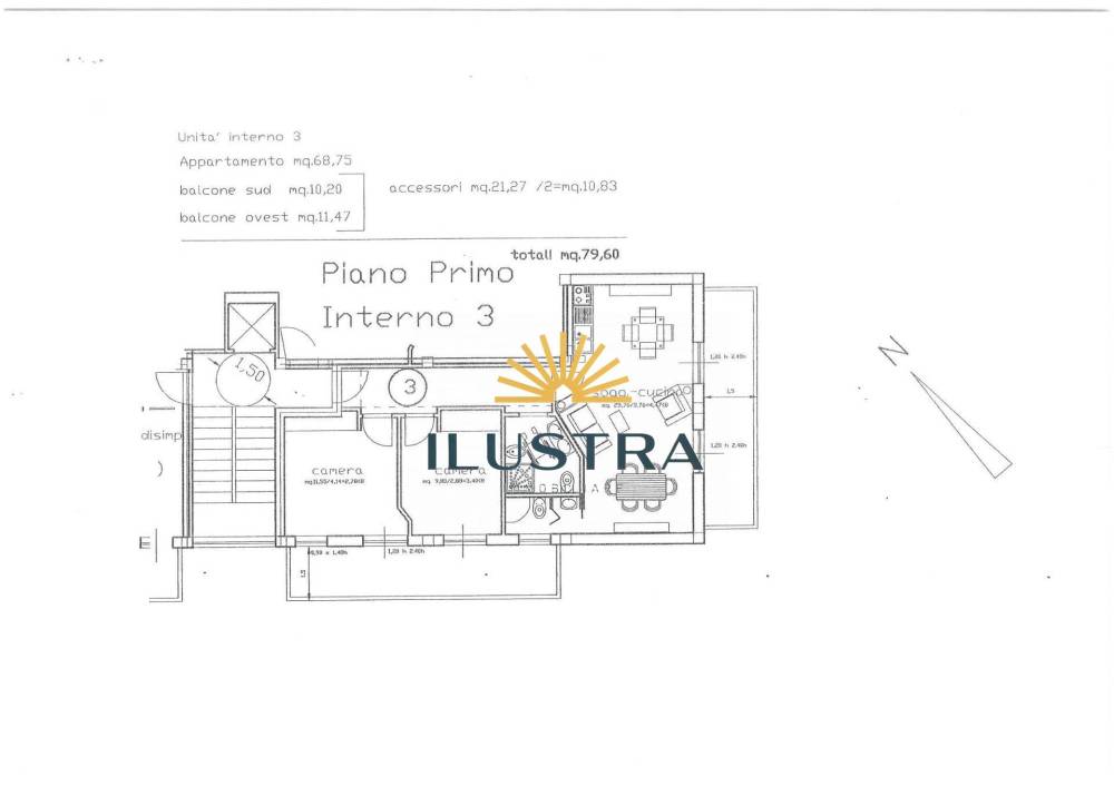 - Appartamento trilocale 80 mq commerciali, 69 mq calpestabili, balcone sud 10 mq, balcone ovest 11,5 mq. Prezzo 145.000€
