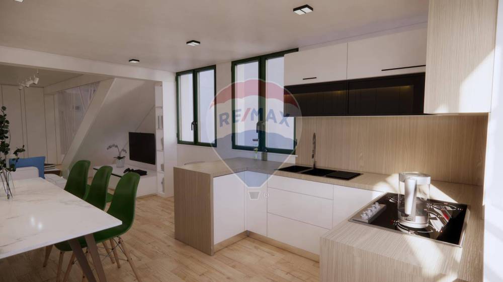 Un ampio ambiente open-space di circa 40 m² accoglie la cucina e il soggiorno: un volume arioso, ideale per momenti di convivialità e per valorizzare latmosfera loft.