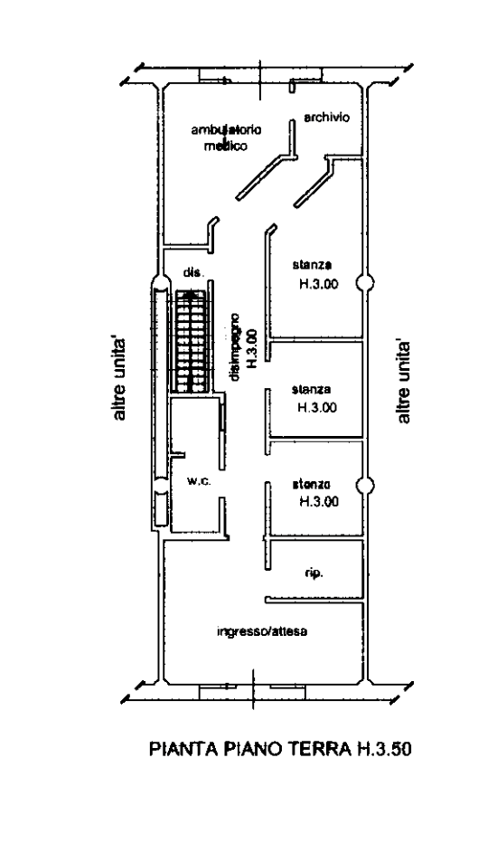 direzionale e commerciale Rondó" situato in Comune di Silea (TV in via Treviso, composto da un ingresso - attesa, tre stanze, ambulatorio medico, bagno, due disimpegni, ripostiglio e archivio al piano terra; disimpegno, ripostiglio, tre magazzini, spogliatoio, antibagno e bagno al piano interrato.