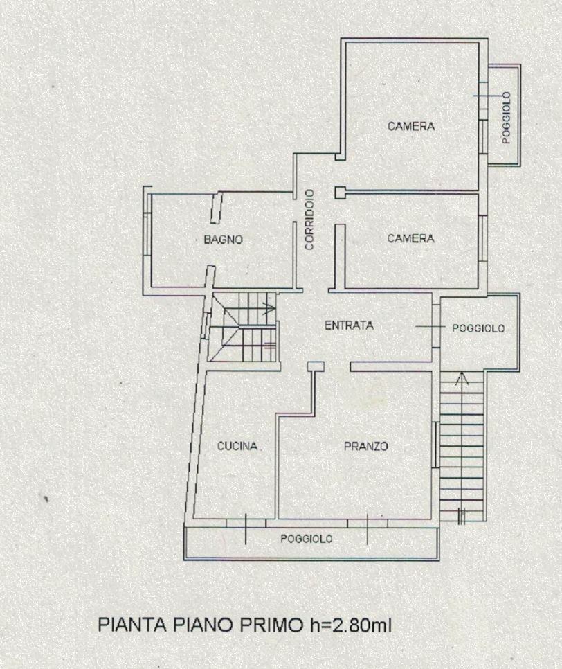 Casa singola su due livelli con annessa autorimessa e corte esclusiva situata a Caorle (VE) in via Giuseppe Mazzini, composta al piano terra da un ingresso, atrio vano scala, magazzino, corridoio, locale caldaia e bagno-lavanderia, portico e garage; al piano primo da entrata, vano scale, due camere da letto, bagno, tre poggioli, corridoio, cucina e sala da pranzo.
