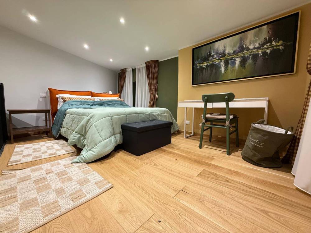 La camera padronale, posta al livello principale, offre comfort e tranquillità, mentre il bagno, moderno e super rifinito, è dotato di una spaziosa doccia.