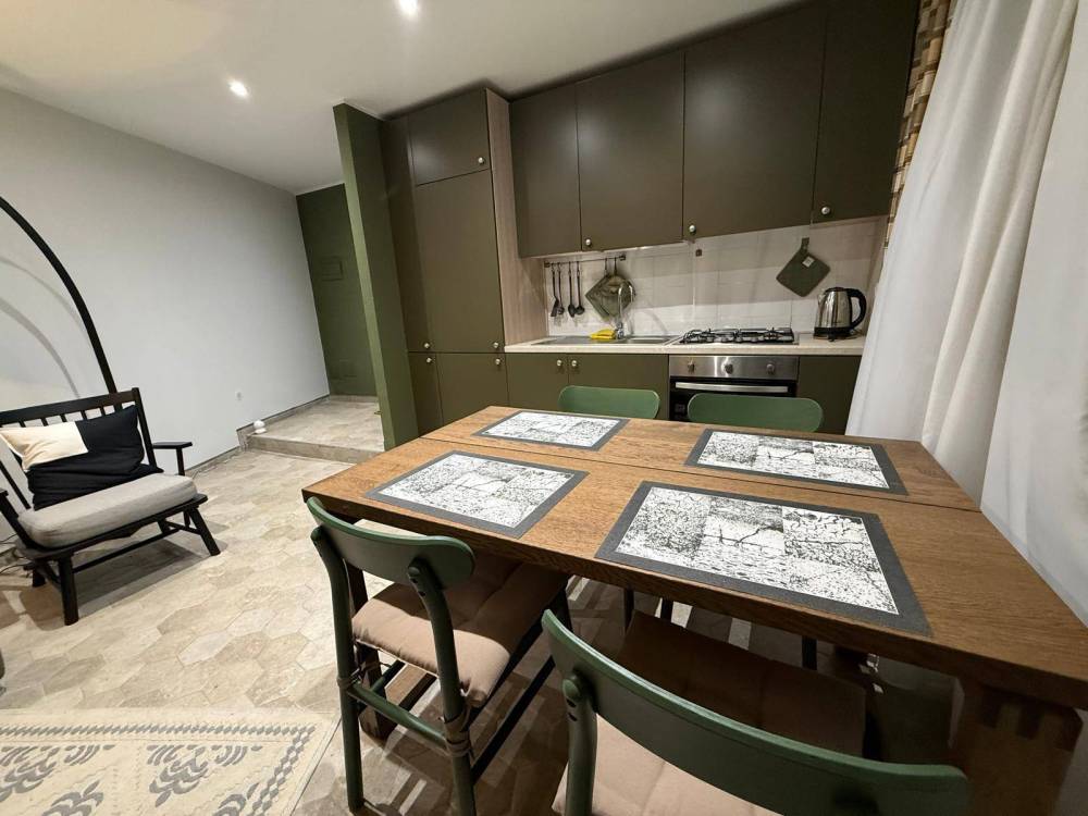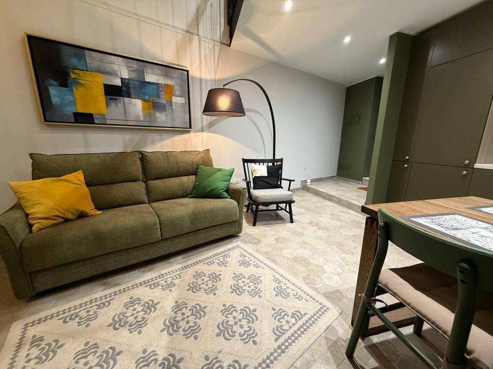 L’ingresso si apre su un luminoso salone con angolo cottura, arredato con gusto e completo di divano letto, perfetto per ospitare amici o familiari.