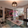 La cucina a vista è integrata in modo impeccabile, mentre la zona pranzo dialoga in continuità con lampia area relax, riscaldata dallatmosfera del termocamino e dalle pareti in pietra che aggiungono carattere e matericità.