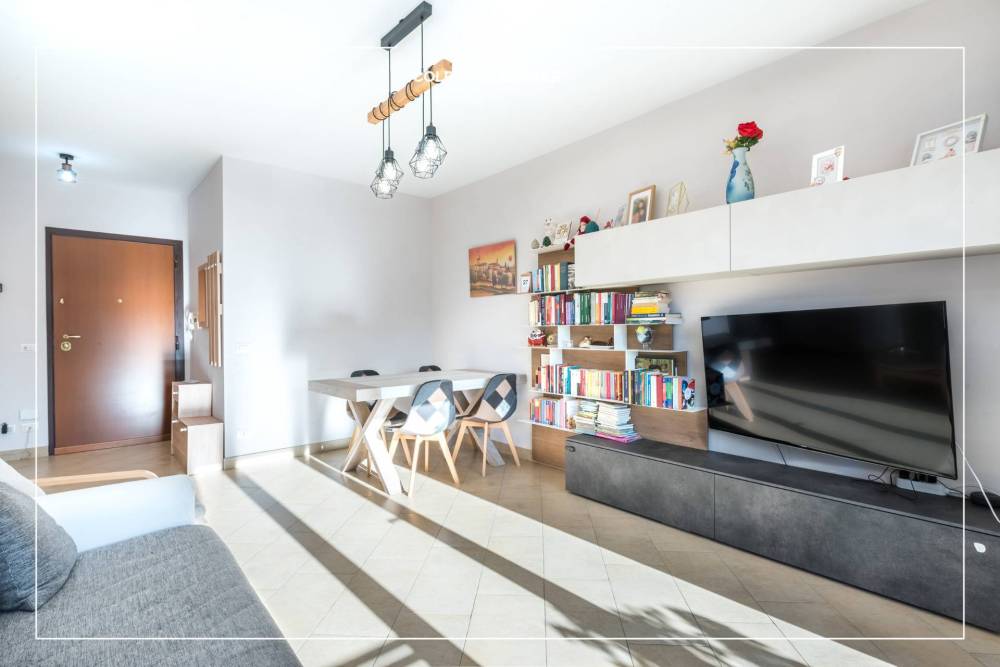 L'appartamento è disposto su un unico livello; gli spazi interni risultano comodi e ben distribuiti, tipici delle moderne concezioni; presentano subito all'ingresso un ampio salone collegato attraverso una grande finestra alla superfice esterna rendendola ben fruibile, una cucina a vista divisibile con penisola ben studiata che consente la convivialità durante il suo utilizzo ma allo stesso tempo dona privacy alla sala grazie ad una parziale divisione degli ambienti, il disimpegno che conduce alla zona notte dove sono collocati la camera matrimoniale di buone dimensioni, il servizio finestrato munito di cabina doccia e due grandi ripostigli di cui uno adibito come cabina armadio.