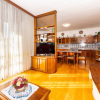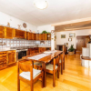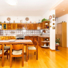 Adiacente, troviamo una spaziosa cucina con angolo cottura in legno massello, tavolo da pranzo per sei persone e accesso diretto allesterno.
