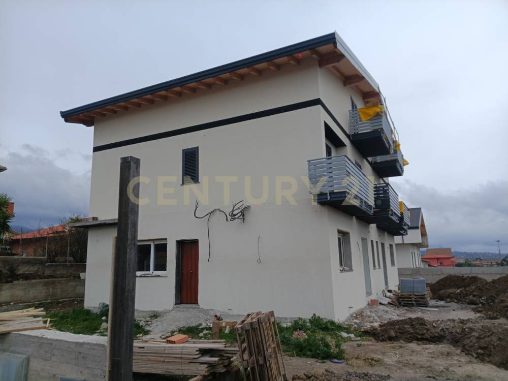 SANTA MARIA DI LICODIA. Proponiamo Villa accorpata di nuova costruzione disposta su tre elevazioni, di 70 mq per piano, con 500 mq di giardino privato. La villa è così composta: Piano terra: ingresso su soggiorno dal quale si accede alla cucina abitabile tramite ampia posta a scomparsa, bagno doccia, studio, ripostiglio. Piano primo: disimpegno, 3 camere da letto tutte balconate, bagno doccia, cabinarmadio. Piano secondo mansardato: open space pavimentato e rifinito, con balconi e predisposizione impianti. Nuove tecnologie costruttive, coibentazione con polistirene e lana di roccia, mansarda con tetto in legno lamellare con termocopertura. Termoautonoma con radiatori a metano, infissi a taglio termico, ottimo capitolato. L'immobile si trova in una zona strategica in quanto si trova a poche centinaia di metri dallo svincolo della Strada Statale. Comodi spazi per vivere al meglio una casa con ogni confort, panoramico vista mare e vista Etna. Euro 270.000. Consegna Febbraio 2026. RIF: 01-027