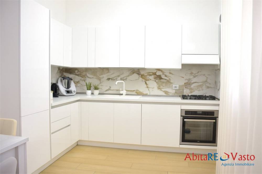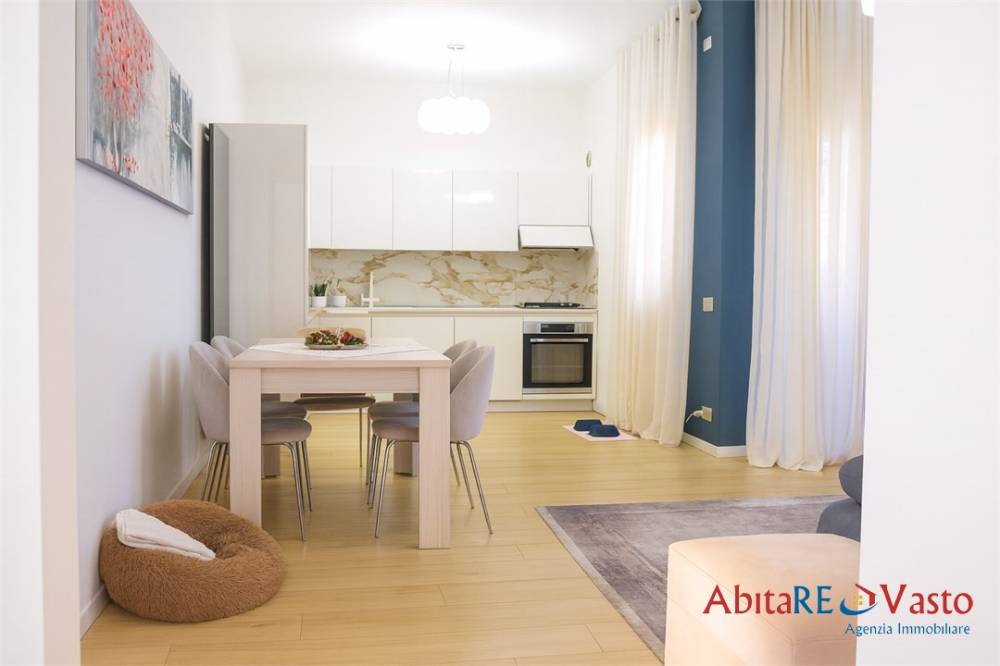 Vasto Marina - Centro, a pochi passi dal marenIn posizione centralissima e riservata, all'interno di una palazzina recintata, proponiamo in vendita esclusiva un appartamento al terzo ed ultimo piano, ideale per chi desidera vivere il mare tutto l'anno o godere di una raffinata casa per le vacanze. L'immobile, completamente ristrutturato nel 2024 e in perfetto stato di manutenzione, si presenta accogliente, luminoso e pronto da abitare. L'ingresso conduce a un ampio soggiorno con angolo cucina a vista, seguito da disimpegno, 2 camere da letto, bagno con box doccia e un terrazzo abitabile, parzialmente chiuso con comode vetrate, dal quale si apprezza una gradevole vista mare.nDotato di riscaldamento autonomo, climatizzazione e posto auto coperto di proprietà all'interno dell'area condominiale. La vendita comprende tutti gli arredi, consentendo un immediato utilizzo senza ulteriori investimenti.nLibero a rogito. Palazzina priva di ascensore. Una soluzione completa, curata e strategicamente posizionata, perfetta per chi sogna di abitare a pochi passi dalla spiaggia, senza rinunciare a comfort e qualità.nTrattativa riservata in agenzia.n - Maggiori Dettagli: Lavastoviglie, Porta blindata, Vista Mare, Climatizzato, Rete ADSL