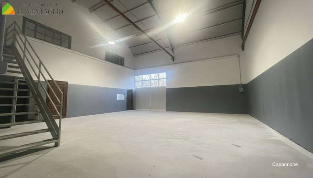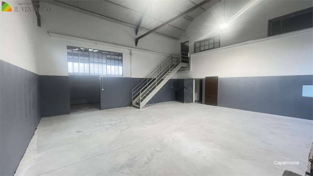 Capannone di Mq 132 (mq 92 laboratorio e mq 40 di magazzino) con ufficio che è dislocato su due piani per un totale di mq 50 circa e servizio al piano terra.