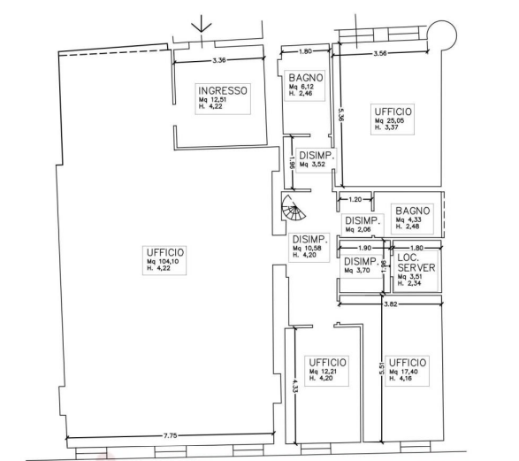Ufficio situato a Vicenza (VI), in Galleria del Pozzo Rosso, posto al piano terzo servito da ascensore. L'unità direzionale è composta da ingresso, ampio locale ad uso ufficio con affaccio su Corso Palladio, disimpegno, tre ulteriori locali ad uso ufficio di cui due con affaccio su Corso Palladio e uno sul cortile interno, oltre a due bagni, di cui uno con antibagno e wc, attualmente attrezzato come locale server. La proprietà rappresenta una soluzione di pregio, ideale per attività professionali e direzionali in posizione centrale.