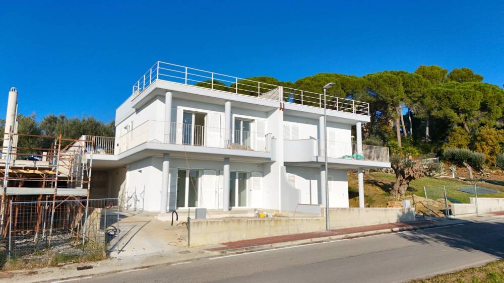 Villino bifamiliare di nuova costruzione, dallo stile contemporaneo e pulito, sviluppato su due livelli per una superficie coperta complessiva di circa 135 m². Una soluzione moderna, pensata per chi cerca comfort, efficienza e spazi ben distribuiti, senza rinunciare alla vista mare.