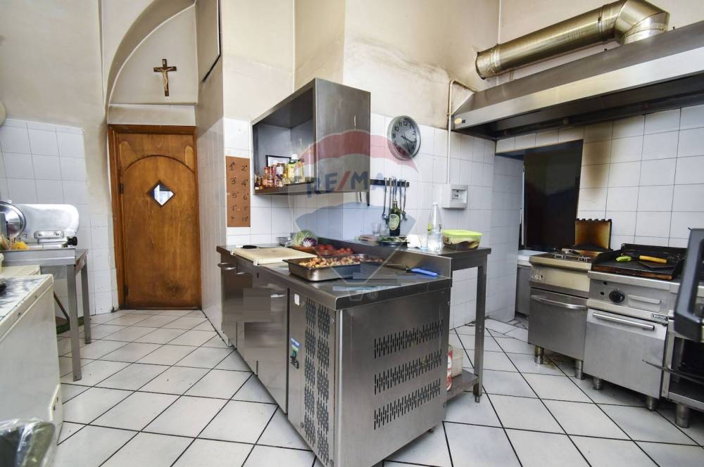 La soluzione si presta ad essere suddivisa in due locali distinti, ognuno dei quali avrebbe due vetrine su strada, una cucina attrezzata e servizi. In questa seconda opzione il prezzo è da concordare.