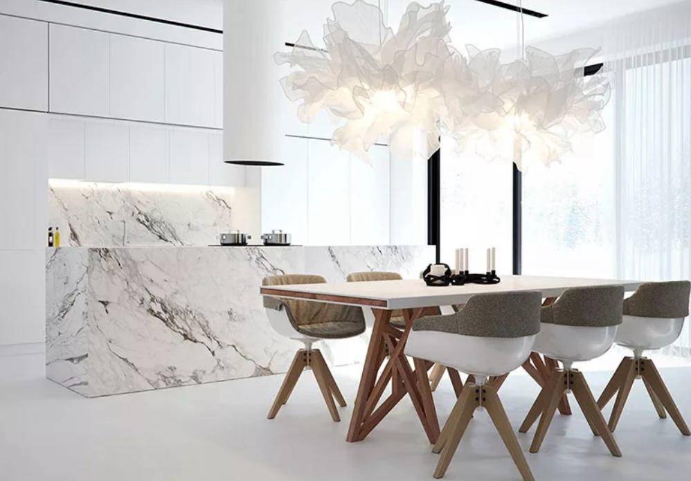 L'ingresso principale si apre su un ampio open space formato da luminoso salone con pavimento in marmo e cucina , anch'essa molto spaziosa e completamente arredata, è perfetta per chi ama cucinare e ricevere ospiti. La villa si sviluppa su tre piani, per un totale di 500 metri quadrati.