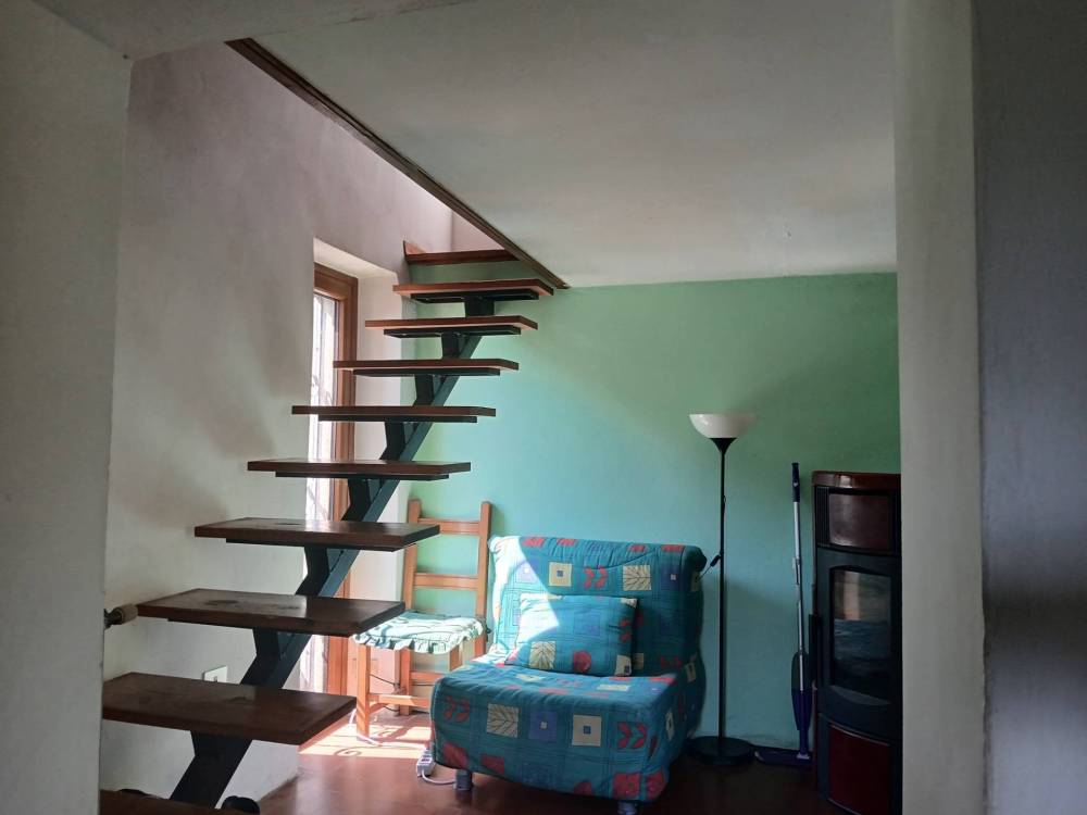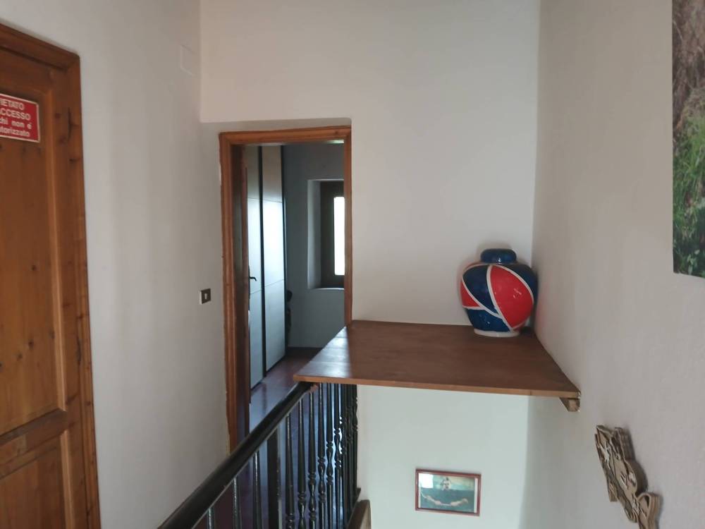 Al piano terra si trova un' accogliente cucina in muratura che ci introduce all’abitazione; salendo al primo piano abbiamo un ampio soggiorno con camino e stufa a pellet che si apre verso il giardino posteriore di circa 70 mq e verso un grazioso spazio verde anteriore. Da qui, una scala in pietra conduce al terreno di proprietà di circa 5.000 mq, che circonda l’abitazione offrendo privacy e una splendida vista sulla vallata.