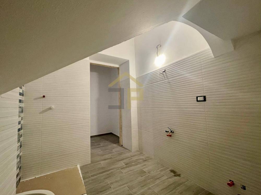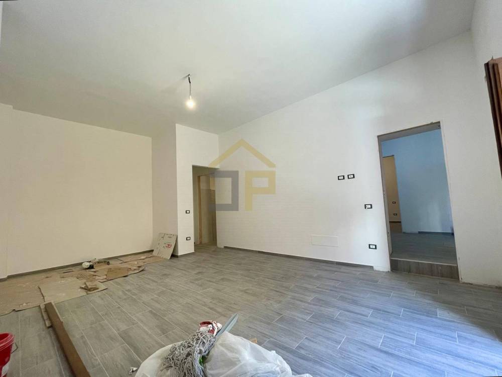 Dal secondo ingresso si entra invece in un ampio salone, seguito da un disimpegno, una camera e un bagno.