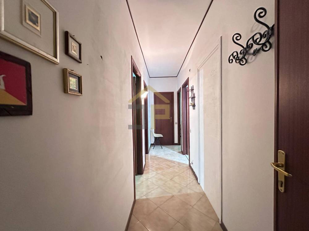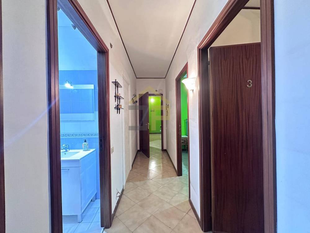 Da qui, un corridoio/disimpegno conduce alla zona notte, dove si trovano una camera da letto matrimoniale con balcone, due camerette e due bagni, di cui uno completo di pratica zona lavanderia.