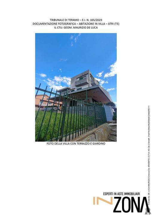 ASTA --- prezzo and euro;93.940,00 - risparmio and euro;281.000nDiritti pari alla piena proprietà su villa ubicata a Atri (TE), Via del Risorgimento, costituita da p.S1, p. terra, p.1° e p. 2°, della consistenza di 12,5 vani. Il bene è composto da: abitazione di mq 220,00 circa; balconi-terrazzo di mq 54,00 circa; garage, fondaco, soffitta per mq 89,10 circa; giardino esclusivo di mq 54,00 circa. Totale superficie convenzionale di mq 417,10 circa. Disponibilità: Occupato.nnData di venditan25/02/2026 10:30nnPrezzo base d'astan125.250,00 and euro;nOfferta miniman93.940,00 and euro;nnL'esattezza di tutti i dati pubblicati sarà confermata in sede di consulenza.nTi piacerebbe comprare una casa all'asta ma non sai come fare perché non sei un esperto?nnContattaci per avere maggiori informazioni su questo immobile e su come poterlo acquistare in totale sicurezza.nnINZONA offre un servizio di ASSISTENZA TECNICO - LEGALE per l'acquisto di immobili in asta attraverso queste attività:nnPRIMA CONSULENZA Appuntamento presso la nostra sede di Mosciano Sant' Angelo Viale Europa 23 per offrire chiarimenti sulle aste ed ascoltare le tue esigenze immobiliari.nMEDIAZIONE CREDITIZIA Servizio esclusivo ad alto valore aggiunto, proponendo un ventaglio di prodotti tra i più completi con studio fattibilità per la partecipazione in asta con mutuo fino al 100%n- Studio della perizia e della documentazione dell'immobilen- Accertamenti catastali per eventuali abusi edilizin- Accompagnamento Visita Immobilen- Disbrigo pratiche per la partecipazione all'astan- Rappresentanza Legale il giorno della venditan- Rilascio del decreto di trasferimento in tempi brevin- Assistenza per il Saldo Prezzon- Compilazione F24 per Tassen- Disbrigo Pratiche per Eventuale Sanatorian- Assistenza alla Consegna ImmobilennPer maggiori informazioni inviaci un messaggionnnn