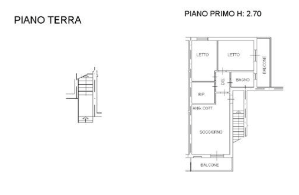 Trattasi di appartamento al primo piano con cucina-pranzo-soggiorno, disimpegno, bagno, due camere da letto, un ripostiglio e due balconi di 4,50mq.