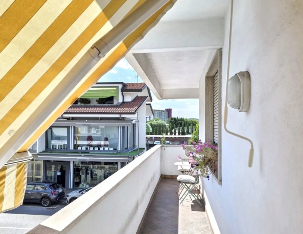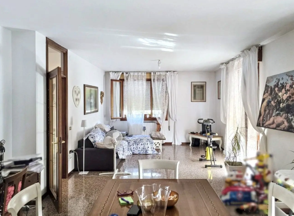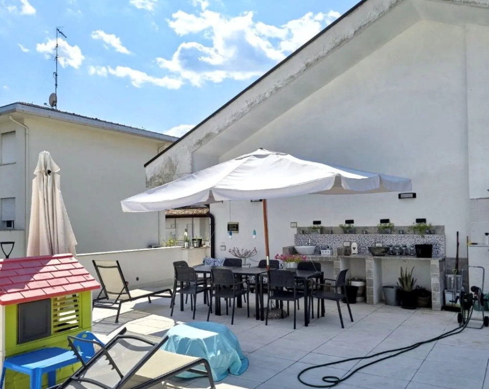 Porzione di bifamiliare su tre livelli con garage e scoperto esclusivo situata in Abano Terme (PD) in via Cardano, composta al piano terra da un ingresso, vano scala, ripostiglio, centrale termica e servizio igienico; al primo piano da un ingresso, disimpegno, un soggiorno-sala da pranzo, una cucina, un bagno, camera, due poggioli ed una terrazza di circa 71 mq; al piano sottotetto da tre locali soffitta non abitabili, bagno, disimpegno e tre poggioli.