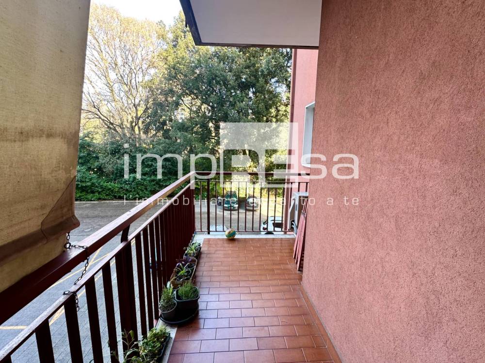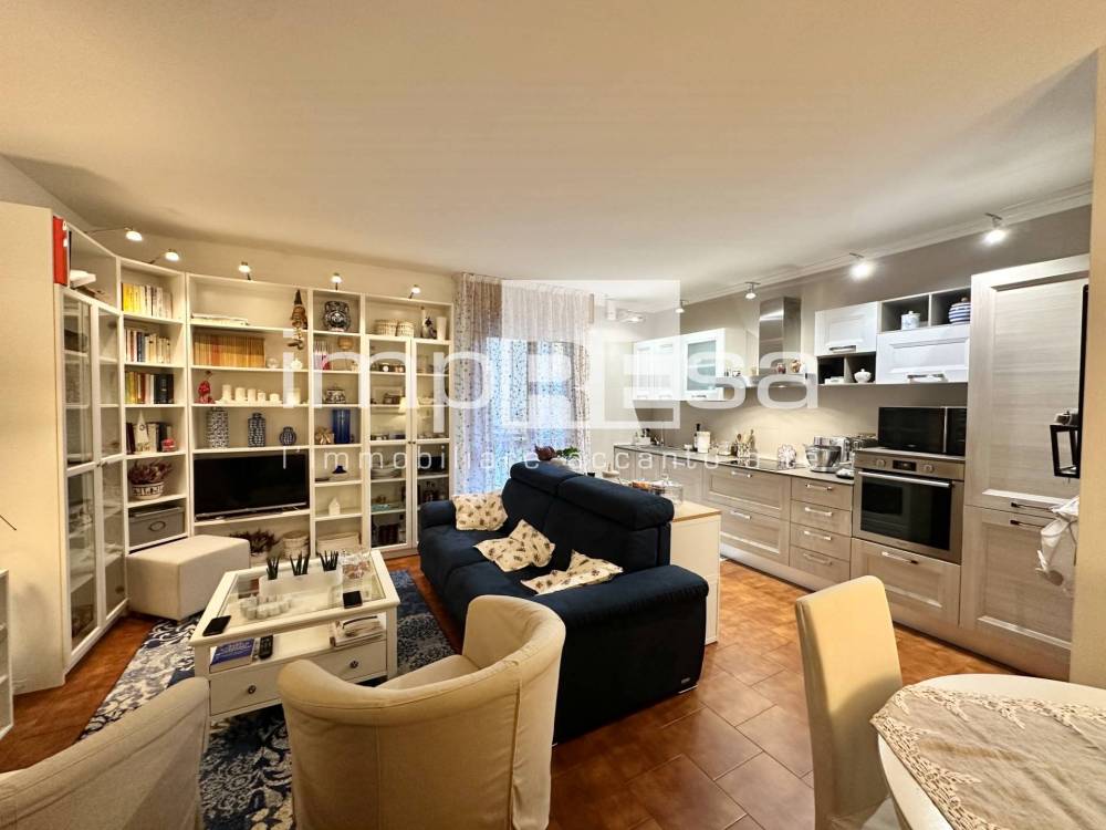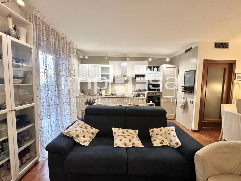 L'immobile è di mq. 60 circa, composto da ingresso, ampio salotto con cucina a vista e angolo pranzo con affaccio su terrazziono a Nord con tenda parasole esterna, lungo corrdoio completo di armadiatura a muro, bagno con vasca e camera matrimoniale.