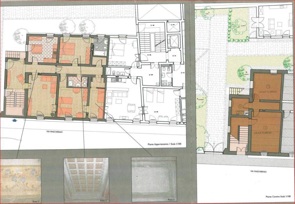 Limmobile è così disposto: Al piano rialzato, una zona ingresso studio ampia e luminosa, cucina abitabile di grande metratura contigua alla zona pranzo soggiorno, generosa stanza adibita a salotto o 3ª camera da letto matrimoniale. Corridoio notte con accesso alla camera padronale con soffitti decorati e bagno privato. Camera singola, cabina armadio, 2º bagno.