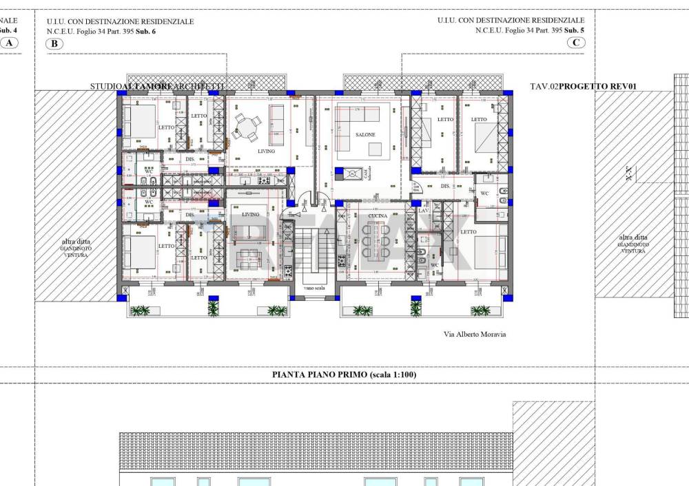 In via Alberto Moravia, a Grammichele (CT), in edificio di costruzione primi anni 2000, composto da soli due livelli fuori terra (i bassi non sono inclusi in quanto categoria commerciale), presentiamo in vendita lintero piano primo allo stato grezzo, libero su tre lati e dotato di doppia esposizione, caratteristiche che garantiscono luminosità e comfort.