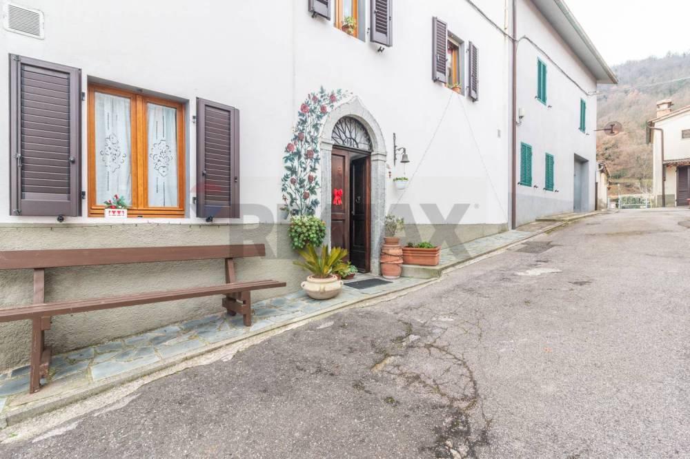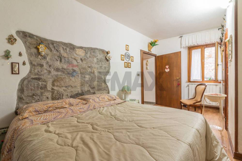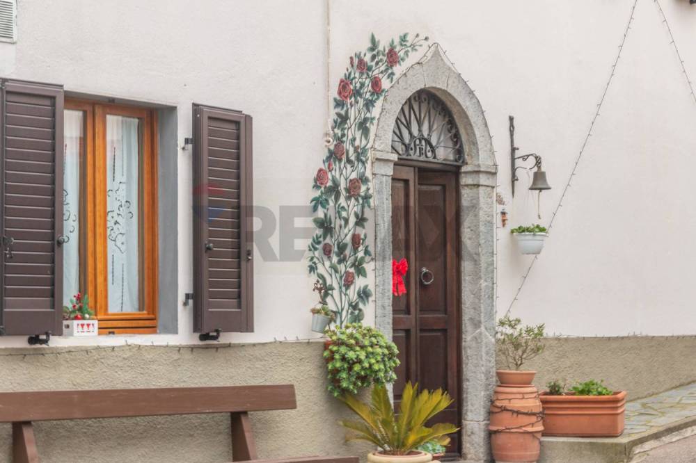 Il passaggio dalla cucina al soggiorno è caratterizzato da due archi rifiniti da mattoni e pietra, un affresco fatto a mano nella parete e un mosaico sul pavimento. Il soggiorno rifinito da lavori di pregio con predisposizione per riscaldamento a pellet crea un'atmosfera calda e accogliente.