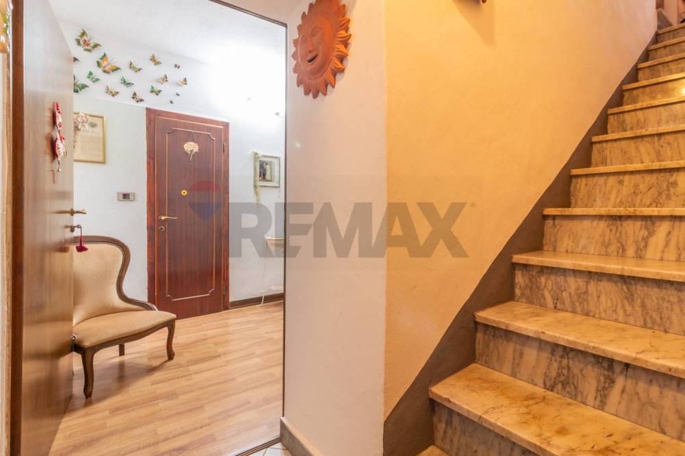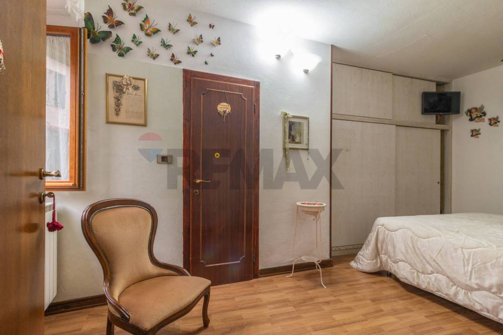 L'entrata presenta un disimpegno che da accesso ad una prima camera da letto dotata di servizio e due ampie stanze usate come cantina e ripostiglio.