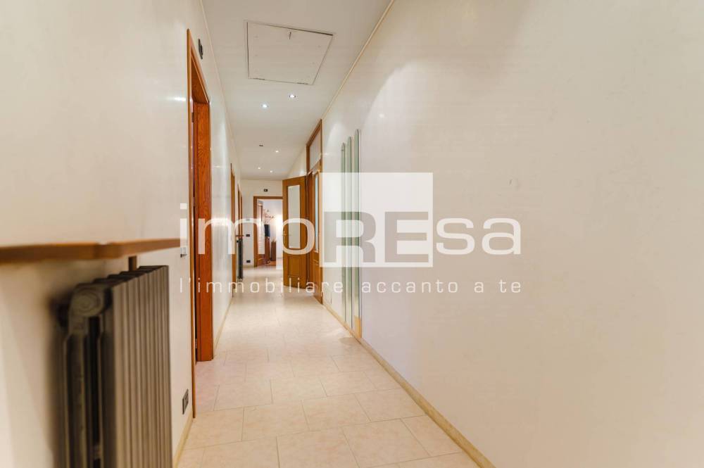 Al piano primo, raggiungibile da una scala esterna indipendente, si sviluppa il secondo appartamento: ingresso, cucina abitabile, un soggiorno di oltre 30 mq, quattro camere (due matrimoniali e due doppie) e due bagni finestrati. Le due unità sono comunque collegate internamente tramite una scala che conduce anche alla cantina interrata e ai due garage, ciascuno di 18 mq.