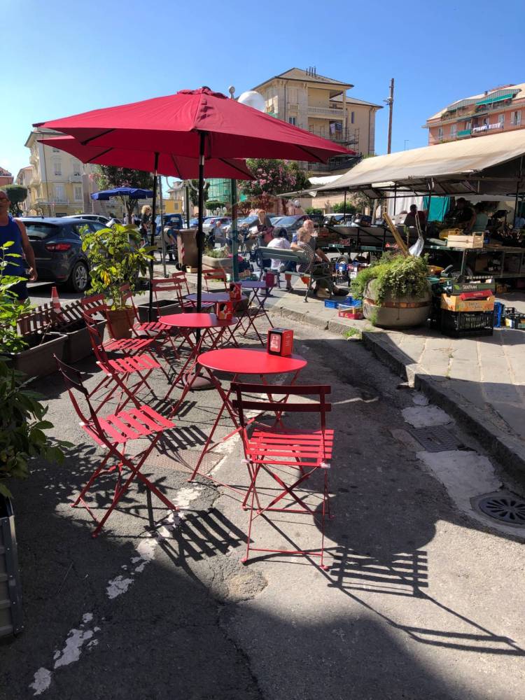 Il locale gode di una posizione assolutamente privilegiata: tre ampie vetrine si affacciano direttamente sulla piazza del mercato quotidiano, mentre una quarta vetrina dà su via Roma, una delle principali arterie pedonali del centro storico e del tipico caruggio ligure.