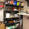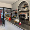 Il bancone è completo di tutte le attrezzature necessarie per il servizio di caffetteria, bevande e snack, mentre la piccola cucina consente la preparazione di semplici piatti caldi e freddi per soddisfare i clienti nelle pause pranzo e durante gli aperitivi.