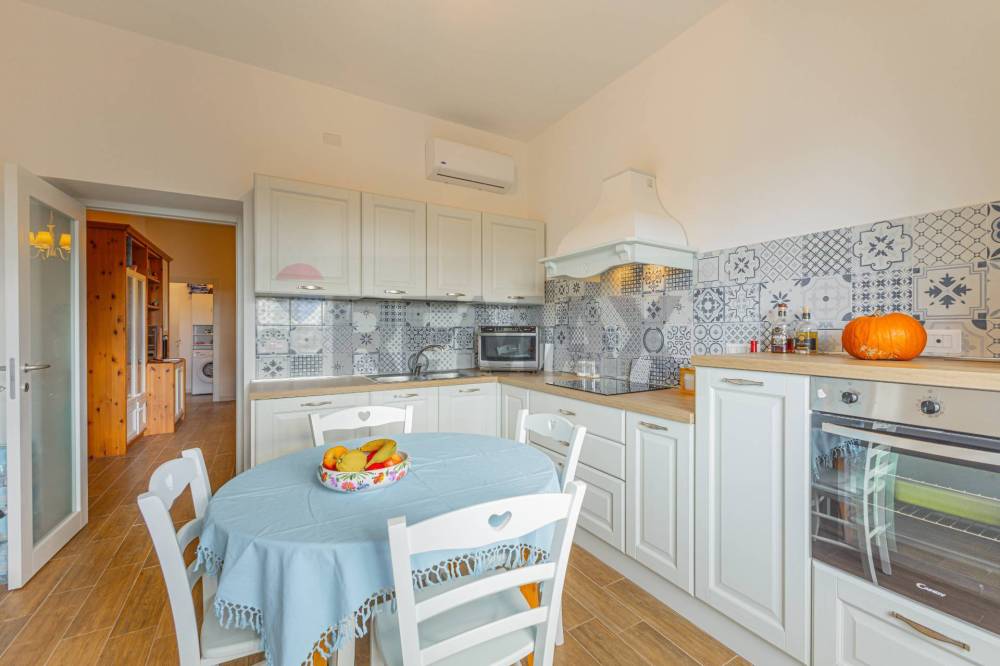 Lingresso separato accompagna verso un elegante soggiornosala da pranzo, accogliente e luminoso. La cucina abitabile, con affaccio su Via Luna e Sole, è funzionale e ben organizzata.