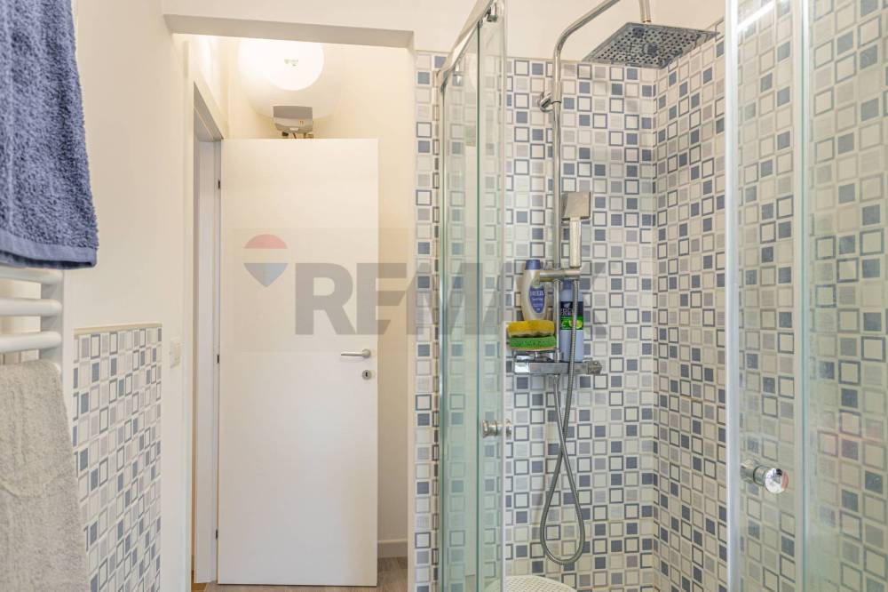La zona notte comprende due camere da letto: una matrimoniale con cabina armadio e balcone, e una singola con affaccio interno. Completa la proprietà una seconda ampia zona giorno con cucina a vista, uno studio utilizzabile come terza camera, bagno padronale con doccia e secondo bagno con lavanderia.